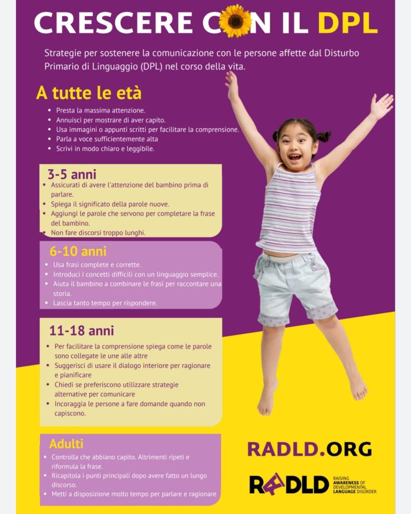 Secondo la Raising Awareness of Developmental Language Disorder (RADLD), organizzazione internazionale che si occupa di sensibilizzare circa il disturbo primario di linguaggio, questa condizione riguarda 1 persona su 14.